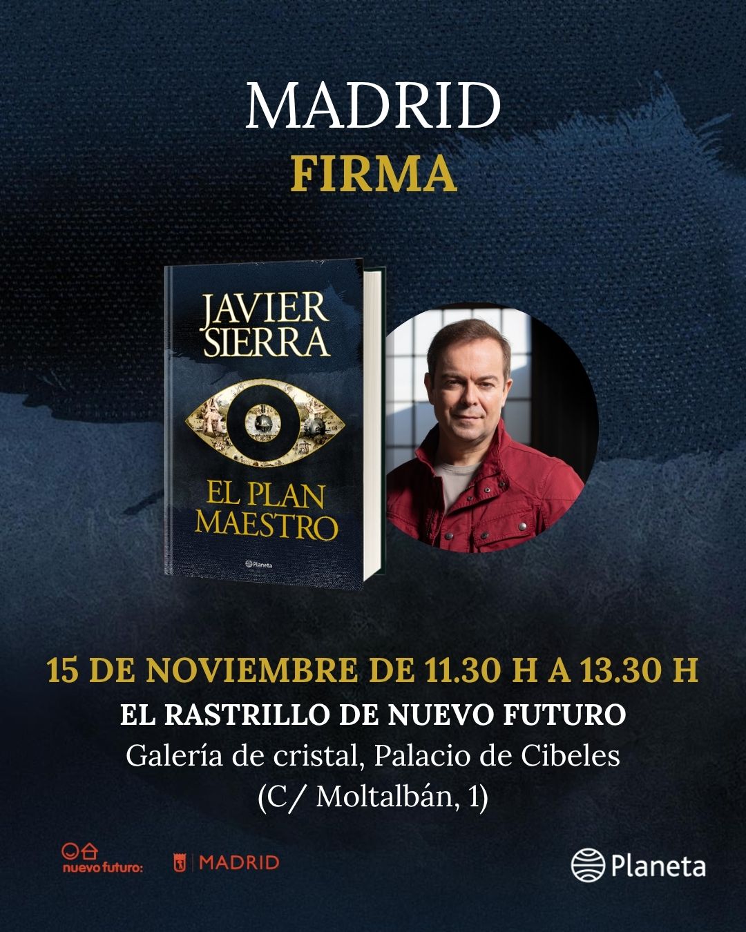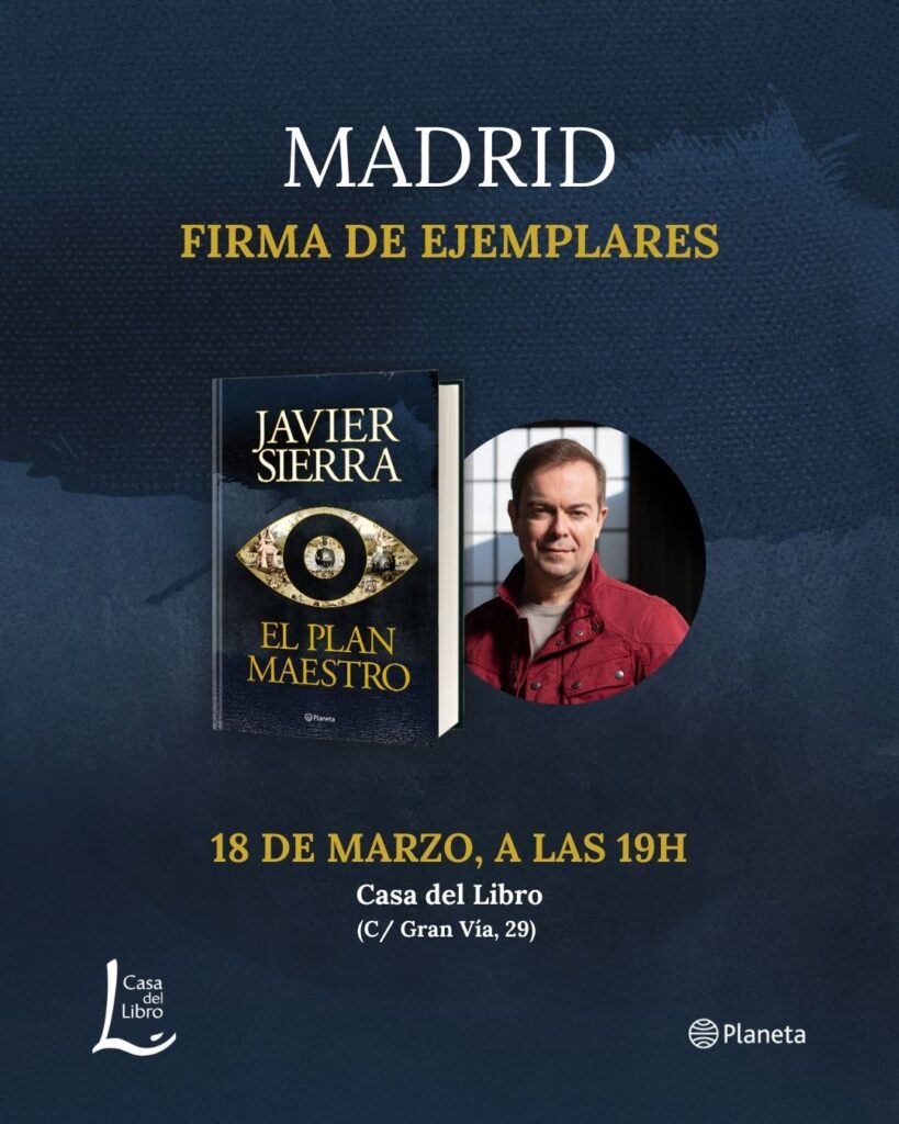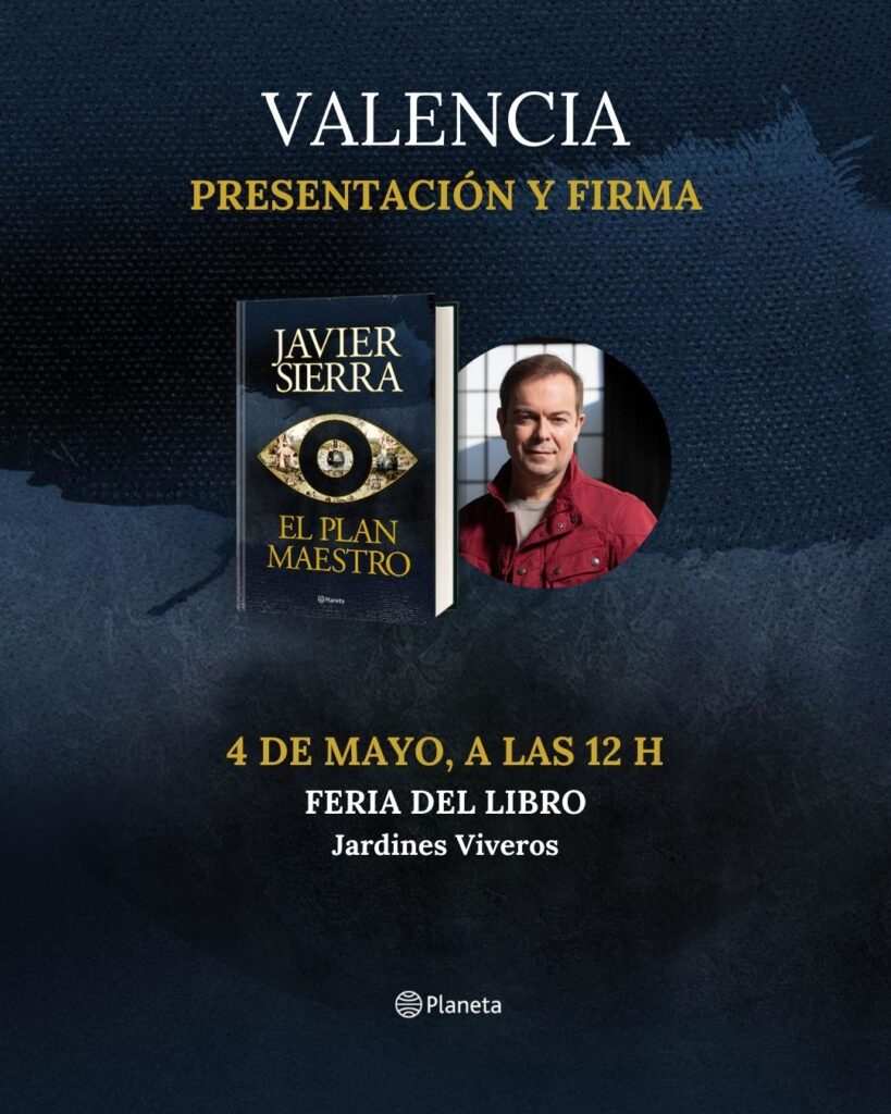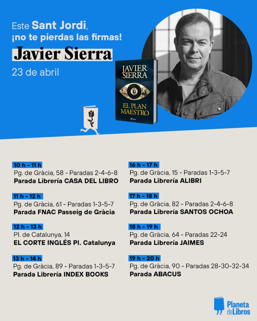 Javier Sierra está embarcado en una gira de presentaciones y firmas de su novela “El plan maestro” por toda España. Consulta aquí dónde y cuándo podrás verlo y pedirle que te dedique su libro.