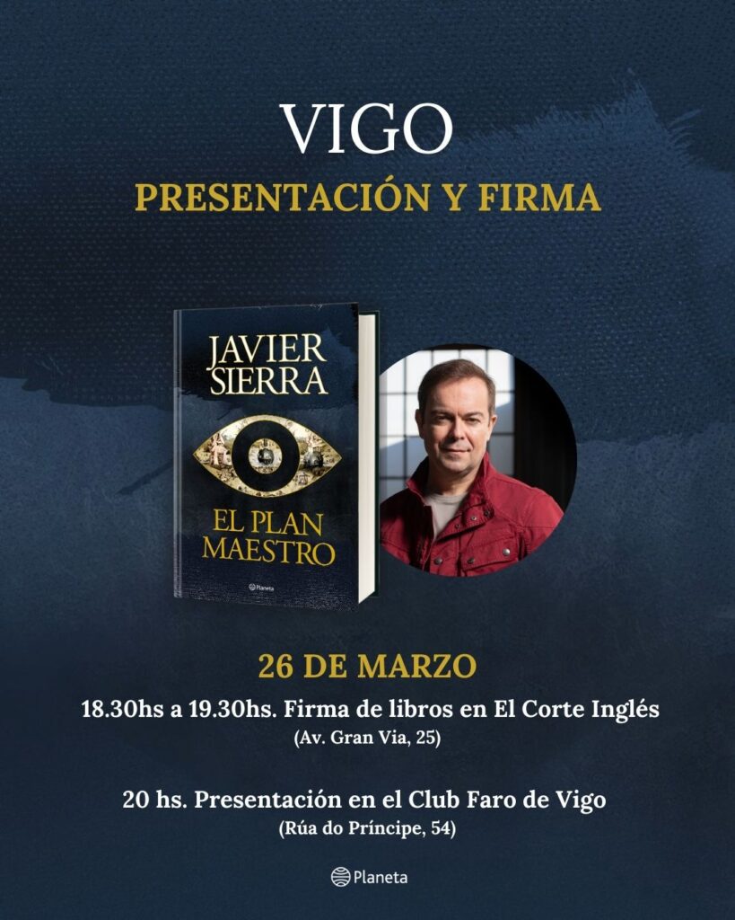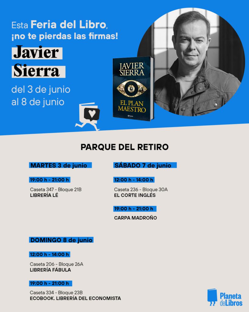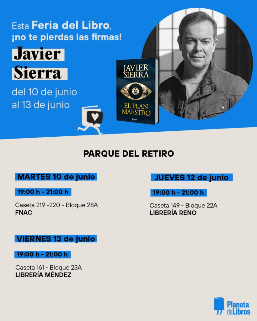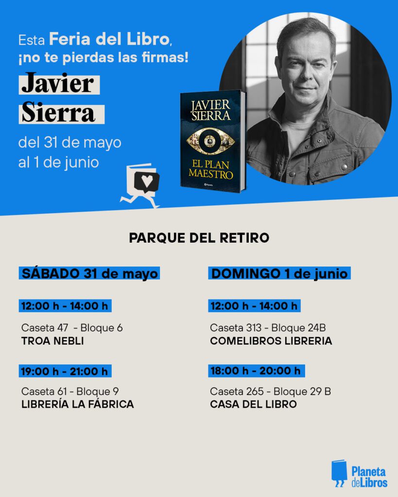 Javier Sierra está embarcado en una gira de presentaciones y firmas de su novela “El plan maestro” por toda España. Consulta aquí dónde y cuándo podrás verlo y pedirle que te dedique su libro.